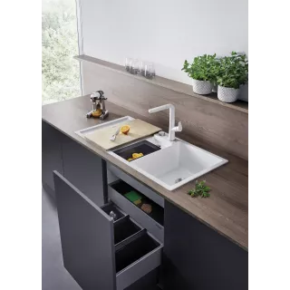 BLANCO PLEON z kompozytu SILGRANIT® PuraDur®Czysta elegancja - duża pojemność Komory BLANCO PLEON są połączeniem ponadczasowego, eleganckiego i prostego wyglądu z maksymalną pojemnością. Seria BLANCO PLEON oferuje rozwiązania do wszystkich...