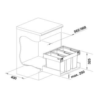 BLANCO SELECT II Compact 60/2Zbieranie, segregowanie, porządkowanie — system segregacji odpadków do szafek z wysuwanymi frontamiIdealny do montażu przed bojlerami niskociśnieniowymi, instalacjami ciepłej wody oraz systemami filtracyjnymi...