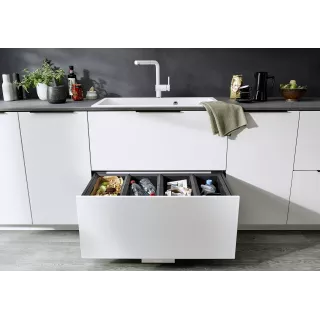 Selektor odpadów BLANCO FLEXON II Low 90/4 umożliwia idealne dopasowanie go do indywidualnych potrzeb: istnieje możliwość wyboru rozmiaru koszy oraz ich ustawienia w szafce/szufladzie.