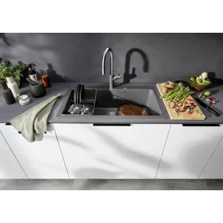 Połączenie pięknego wzornictwa i imponująco wytrzymałej, łatwej w pielęgnacji powierzchni sprawia, że zlewozmywak z kompozytu SILGRANIT to doskonały wybór. Komora zlewozmywaka sprosta codziennym wyzwaniom, takim jak zadrapania sztućcami, rozmrażanie żywności, kontakt z wrzącą wodą. Silgranit to prawdziwy bohater w kuchni. Jest neutralny w kontakcie z żywnością i wodoodporny, dzięki czemu również szczególnie łatwy w czyszczeniu. Zlewozmywak lub komora z Silgranitu to doskonały wybór, aby ułatwić sobie codzienne prace w kuchni.