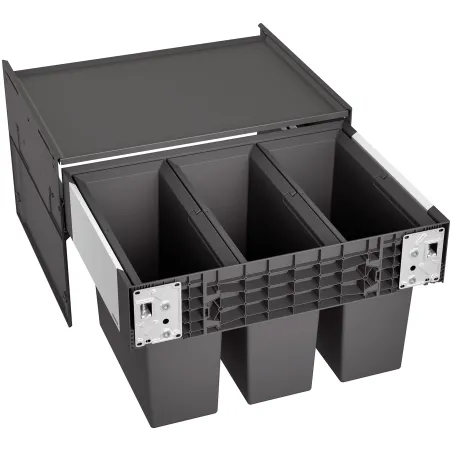System do wysuwania kosza mocowany do frontu szafki, pokrywa systemowa, 3 x kosz 15 l