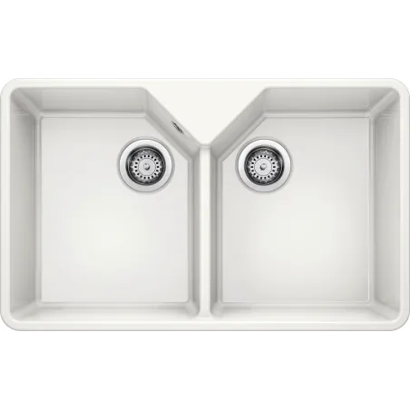 BLANCO Villae to elegancki zlewozmywak ceramiczny w stylu modern farmhouse. Minimalistyczny design wraz z wysuniętą komorą sprawia, że pasuje do kuchni w stylu klasycznym, skandynawskim, rustykalnym, a nawet i nowoczesnym. Dostępny w wersji jedno- lub dwukomorowej.