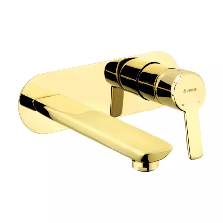 Odkryj złotą baterię umywalkową podtynkową Deante Arnika, łączącą harmonijne kształty z nowoczesnym designem, idealną do eleganckich łazienek.