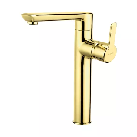 Poznaj złotą, stojącą wysoką baterię umywalkową Deante Arnika, która łączy w sobie luksusowy styl i wyjątkową funkcjonalność.