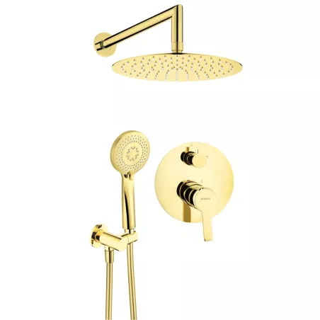 Excellent Pi - Zestaw prysznicowo-wannowy podtynkowy złoty Excellent Pi to luksusowy zestaw prysznicowo-wannowy podtynkowy w kolorze złotym, łączący nowoczesny design z funkcjonalnością. Głowica krągła 200mm: Możliwość montażu na wybranej...