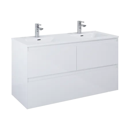 Komplet łazienkowy składający się z szafki i ceramicznej umywalki.produkt do samodzielnego montażukolor: biały, lakierowany na wysoki połysk2 drzwiczek + 1 szufladazawiasy soft-close dbające o ciche i łagodne zamykanieprowadnice z częściowym...