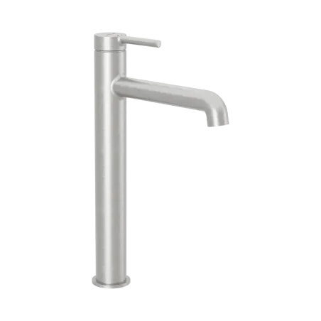 Bateria umywalkowa stojąca wysoka nikiel szczotkowany została zaprojektowana z myślą o umywalkach nablatowych bez otworu na baterię. Wylewka o zasięgu 158 mm i wysokości 290 mm zapewnia wygodne korzystanie z umywalki oraz odpowiednią przestrzeń pod strumieniem wody. Smukła, podwyższona konstrukcja podkreśla nowoczesny charakter strefy umywalkowej i pozwala stworzyć spójną, elegancką kompozycję z umywalką ustawioną na blacie.