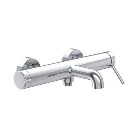 Model przeznaczony jest do montażu natynkowego i posiada standardowy rozstaw mocowań 150 mm oraz komplet krzywek montażowych. Takie rozwiązanie umożliwia instalację baterii do każdej prawidłowo wykonanej instalacji pod baterię wannową, zapewniając wygodę montażu oraz stabilność konstrukcji. Wylewka o wysięgu 166 mm pozwala na komfortowe napełnianie wanny.