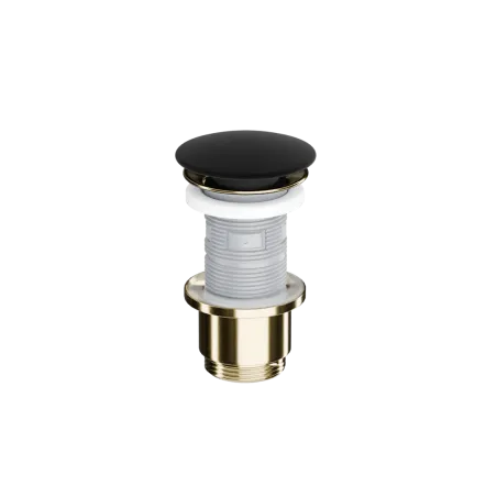 Design Korek klik-klak w wykończeniu korpus złoty połysk, pokrywa ceramiczna czarna to eleganckie i nowoczesne rozwiązanie do każdej łazienki. Łączy estetykę z funkcjonalnością, zapewniając trwałość i komfort codziennego użytkowania. Doskonale komponuje się z nowoczesną ceramiką oraz armaturą.