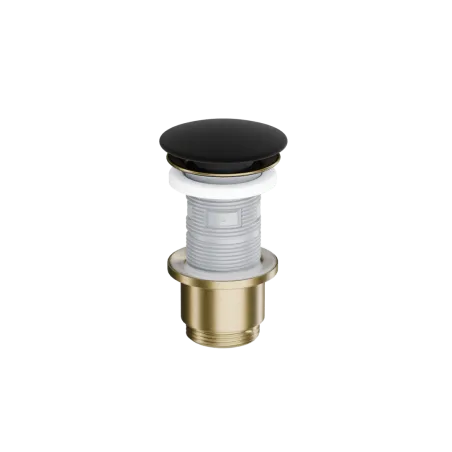 Design Korek klik-klak w wykończeniu korpus złoty szczotkowany, pokrywa ceramiczna czarna to eleganckie i nowoczesne rozwiązanie do każdej łazienki. Łączy estetykę z funkcjonalnością, zapewniając trwałość i komfort codziennego użytkowania. Doskonale komponuje się z nowoczesną ceramiką oraz armaturą.