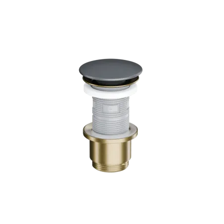 Design Korek klik-klak w wykończeniu korpus złoty szczotkowany, pokrywa ceramiczna grafit mat to eleganckie i nowoczesne rozwiązanie do każdej łazienki. Łączy estetykę z funkcjonalnością, zapewniając trwałość i komfort codziennego użytkowania. Doskonale komponuje się z nowoczesną ceramiką oraz armaturą.