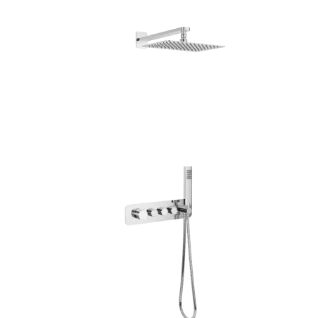 Zestaw podtynkowy prysznicowo-wannowy Krotos z 3 funkcjami składa się z baterii prysznicowo-wannowej Krotos, deszczowni górnej oraz zestawu prysznicowego punktowego mocowanego do frontu rozety baterii. Bateria prysznicowo-wannowa 3-funkcyjna podtynkowa serii Krotos posiada Fix-Box, który ułatwia instalację baterii oraz zapewnia stały dostęp rewizyjny do mechanizmu baterii. Mechaniczny przełącznik funkcji pozwala na wygodny wybór wypływu wody – system Easy-Click pozwala na regulację jednocześnie źródła wody (włącz-wyłącz) oraz ciśnienia przez obrót tego samego pokrętła. Temperaturę można regulować dzięki pokrętle po lewej. Bateria posiada wbudowany uchwyt słuchawki prysznicowej z przyłączem kątowym dla węża prysznicowego. Deszczownica górna może być instalowana na wybranej wysokości. Do zestawu można dobrać wylewkę wannową Krotos i zainstalować pod prysznicem np. na wysokości nad stopami.