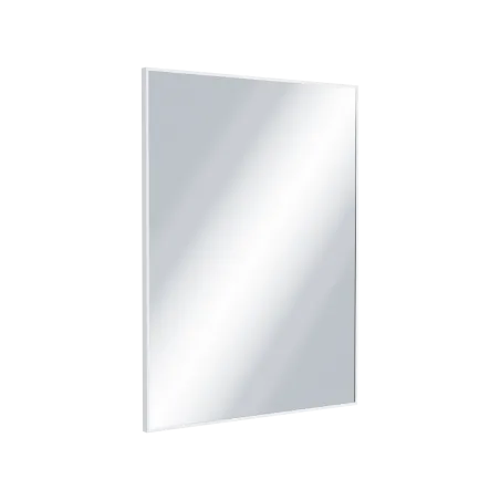 Tafla szkła jest dodatkowo zabezpieczona podklejoną z tyłu folią ochronną, która w razie stłuczenia lustra niweluje możliwość rozpryśnięcia się odłamków szkła i skaleczenia przez użytkownika. Dostępne rozmiary luster: 1000 x 500 mm oraz 800 x 600 mm. Dostępne kolory ramy: anoda czarny mat lub złota szczotkowana oraz lakierowany biały mat.