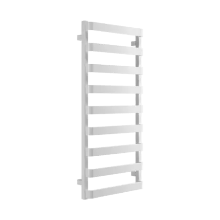 Grzejnik ma szerokie, płaskie profile ułożone w równej odległości od siebie, prostopadle do kolektorów. Dzięki charakterystycznemu wygięciu profili w kształcie litery C, uzyskujemy formę, która nie tylko prezentuje się elegancko, ale również zapewnia łatwą możliwość zawieszenia tekstyliów do wyschnięcia – idealną na przykład na ręczniki kąpielowe. Meteor sprawdzi się więc doskonale jako całoroczna suszarka na ręczniki, łącząc funkcję grzewczą z praktyczną.