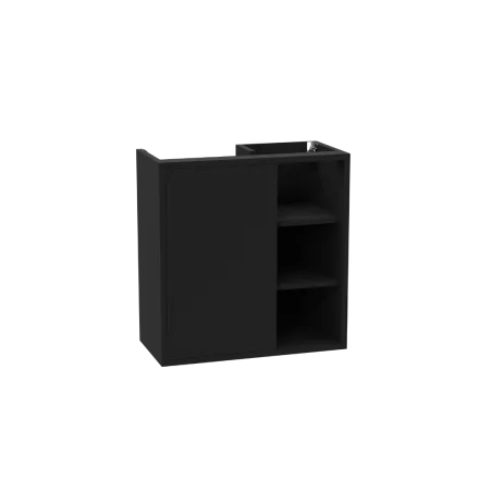 Funkcjonalna konstrukcja łączy wygodę z estetyką. Zamykana część z drzwiczkami wyposażonymi w system cichego domyku dyskretnie maskuje instalacje wodno-kanalizacyjne, oferując jednocześnie dodatkowe miejsce do przechowywania. Otwarte półki zapewniają łatwy dostęp do najpotrzebniejszych akcesoriów lub mogą pełnić funkcję dekoracyjną.