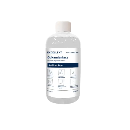 Elementy toalet myjących tj. przewody, zbiornik, dysze myjące wymagają szczególnej dbałości w utrzymaniu ich niezakłóconej funkcjonalności oraz higieny. Systematyczne odkamienianie zapewnia niezawodne funkcjonowanie i przedłuża żywotność urządzenia. W zależności od jakości wody niezbędna jest cykliczne odkamienianie urządzenia co min. 6 m-cy. (W przypadku twardej wody zalecane jest częstsze odkamienianie.) Opakowanie jednostkowe 300 ml wystarcza na 2 zastosowania. Jedno zastosowanie to 150 ml. Ilość niezbędna do jednego zastosowania jest zaznaczona na etykiecie. Płyn jest przeznaczony do toalet myjących z automatycznym systemem odkamieniania.