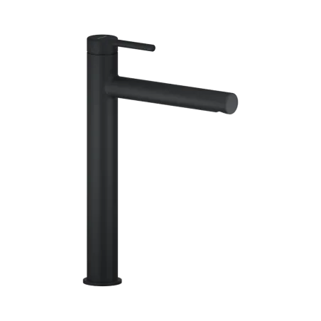 Bateria umywalkowa stojąca wysoka czarny mat została zaprojektowana z myślą o umywalkach nablatowych bez otworu na baterię. Wylewka o zasięgu 174 mm i wysokości 290 mm zapewnia wygodne korzystanie z umywalki oraz odpowiednią przestrzeń pod strumieniem wody. Smukła, podwyższona konstrukcja podkreśla nowoczesny charakter strefy umywalkowej i pozwala stworzyć spójną, elegancką kompozycję z umywalką ustawioną na blacie.
