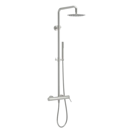 Zestaw prysznicowy PI z deszczownicą o średnicy 25 cm w kolorze nikiel szczotkowany to funkcjonalne rozwiązanie do nowoczesnej strefy prysznica. Model został zaprojektowany z myślą o łazienkach, w których istnieją standardowe wyprowadzenia wody pod baterię prysznicową – z głowicą górną oraz słuchawką prysznicową. Wykończenie nikiel szczotkowany podkreśla elegancki charakter armatury i doskonale komponuje się z pozostałymi elementami wyposażenia.