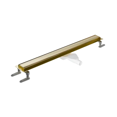 Odpływ liniowy Stilio Gold łączy w sobie minimalizm i praktyczność użytkową. Wykonany został z wysokiej jakości stali nierdzewnej, pokrytej powłoką PVD w kolorze złotym. Odpływ posiada wygodną regulację nóżek w pionie i w poziomie w zakresie do 30mm. Szeroki wybór dostępnych rozmiarów odpływów i wersji rusztu daje możliwość dostosowania do wielkości kabiny oraz wymiarów płytek, co znacznie ułatwia planowanie układu już na etapie projektowania. Produkt polecany jest do instalacji wraz z kabinami Excellent typu walk-in: Fabrika lub Vidoq.