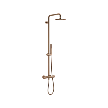 Wykonany z wysokiej jakości mosiądzu, zestaw wyróżnia się nie tylko trwałością i niezawodnością, ale również eleganckim, nowoczesnym designem. Kolor miedziany szczotkowany nadaje łazience wyrafinowanego charakteru, doskonale wpisując się w zarówno klasyczne, jak i minimalistyczne aranżacje.