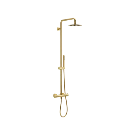 Wykonany z wysokiej jakości mosiądzu, zestaw wyróżnia się nie tylko trwałością i niezawodnością, ale również eleganckim, nowoczesnym designem. Kolor złoty szczotkowany nadaje łazience wyrafinowanego charakteru, doskonale wpisując się w zarówno klasyczne, jak i minimalistyczne aranżacje.