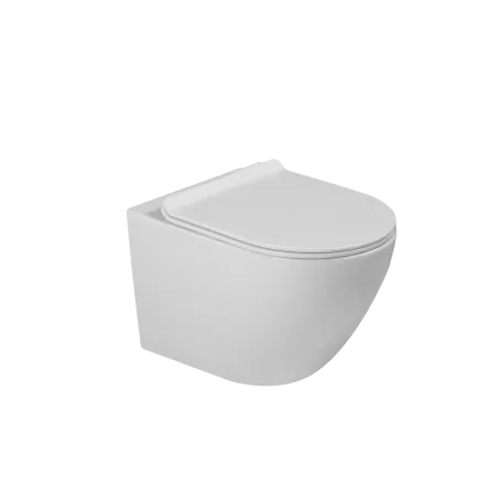 Szara wisząca Miska WC - Kolor: Szary Mat - Materiał: Ceramika - Montaż: Ścienny - Wymiary: 52,5 x 34 x 34,5 cm - Rimless: Bez kołnierza - ułatwione czyszczenie - Ukryte mocowania Deska WC - Materiał: Duroplast - Typ: Wolnoopadający - Wersja...