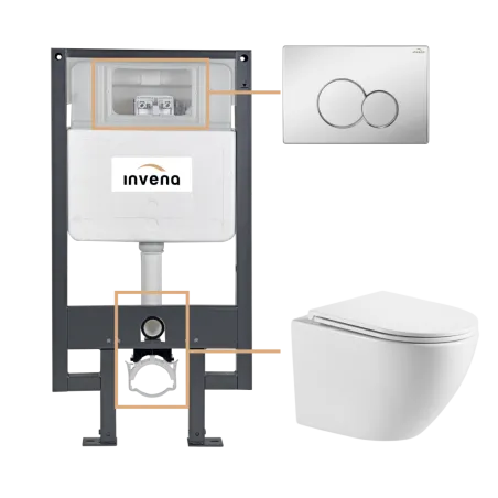 Zestaw podtynkowy WC składający się z:CE-99-001-S STELAŻ PODTYNKOWY DO MISEK WISZĄCYCH WC;CE-93-001-L MISKA WC PODWIESZANA, QFS, LIMNOS OKRĄGŁA, Z DESKĄ WOLNOOPADAJĄCĄ;CC-03-004-S PRZYCISK SPŁUKUJĄCY DO STELAŻA PODTYNKOWEGO, 603 CZARNY;PCN:...