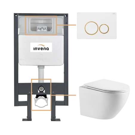 Zestaw podtynkowy WC składający się z:CE-99-001-S STELAŻ PODTYNKOWY DO MISEK WISZĄCYCH WCCE-87-001-L MISKA WC PODWIESZANA, QFS, ASTRI OKRĄGŁA, Z DESKĄ WOLNOOPADAJĄCĄCC-04-013-S PRZYCISK SPŁUKUJĄCY DO STELAŻA PODTYNKOWEGO, 604 BIAŁY/ZŁOTYPCN:...