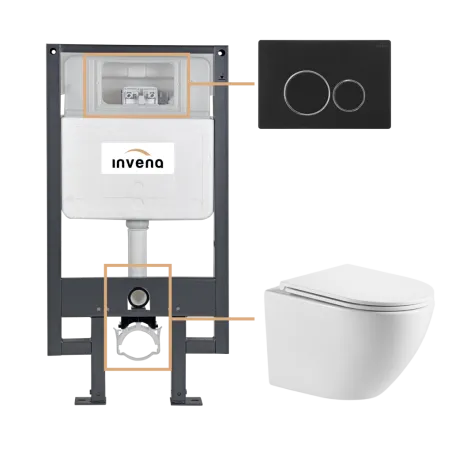 Miska wc bezkołnierzowa, z ukrytym systemem montażu - ułatwia utrzymanie w czystości gwarantując maksimum higieny. Specjalny dystrybutor wody zapewnia optymalne i ekologiczne spłukiwanie 4,5/3l wody.W zestawie:Zestaw montażowyWymiary:Wysokość: 400...