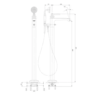 bateria dwuuchwytowa, ścienna, z ceramicznymi zaworami z Soft turn®, powłoka chrom Evershine®, przełącznik prysznicowy mechaniczny, przeplyw 20/8 l/min, przyłącza mimośrodowe 1/2'', zestaw prysznicowy w komplecie: słuchawka 1F "retro" fi 86mm, wąż...
