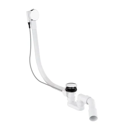 przeznaczony do wanien o średnicy odpływu ø5,2 cm wyposażony w korek automatyczny pokrywa i pokrętło wykonane z mosiądzu, rozmiar pokrywy: ø7 cm wysokość syfonu: 11 cm, długość: 65 cm InstrukcjaRysunek techniczny
