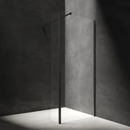 Kabina walk-in. szkło geometryczne 8mm, powłoka shiny-glass, czarnyTeleskop regulowany 70-120 cm (regulacja głębokości użytkowej kabiny) z możliwością montażu pod dowolnym kątemSzkło hartowane grubość 8 mm z powłoką shinny-glass ułatwiającą...