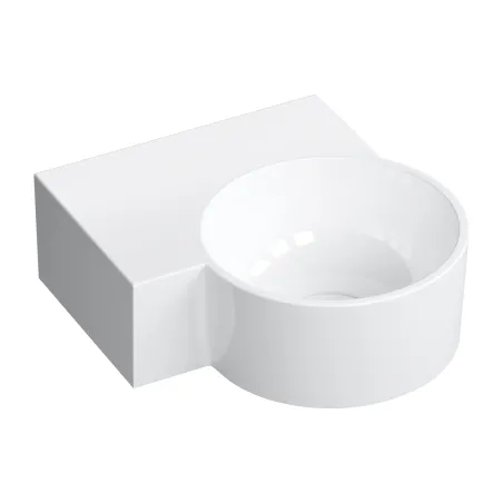 Starannie dopracowana forma umywalki, z perfekcyjnie wykończonymi bokami, zapewnia swobodę montażu i doskonały wygląd w każdej wersji. Zawieszona na ścianie lub w narożniku zachwyca nowoczesną lekkością, a ustawiona na blacie podkreśla wyrazistość i unikalny styl wnętrza. Jej kompaktowe gabaryty czynią ją doskonałym wyborem również do pomieszczeń o ograniczonej powierzchni.