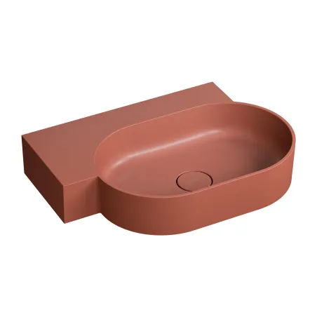 OVO w kolorze terracotta (RAL8004) to umywalka w wyszukanym kolorze ceglanej czerwieni, o aksamitnej w dotyku, matowej powierzchni.