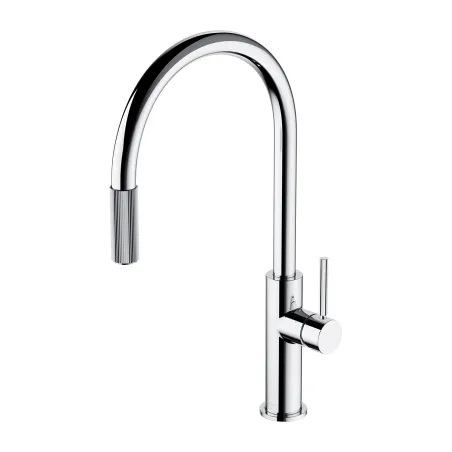 Bateria kuchenna OMNIRES SWITCH łączy minimalistyczne, oparte na wyważonych proporcjach wzornictwo z praktyczną funkcjonalnością, dostarczając wodę zwykłą oraz filtrowaną. Wyraziste, precyzyjnie karbowane detale pozwalają na intuicyjne użytkowanie, wskazując dwa niezależne punkty otwarcia wody: zwykłą na mieszaczu i filtrowaną na końcu wylewki. Wystarczy przekręcić umieszczony na niej pierścień, by napełnić szklankę szybkim strumieniem wody pitnej. Obrotowa, wyciągana wylewka dodatkowo zwiększa funkcjonalność baterii, zapewniając większą swobodę pracy przy zlewozmywaku. Ułatwia płukanie, mycie i napełnianie naczyń oraz dokładne czyszczenie całej jego powierzchni.