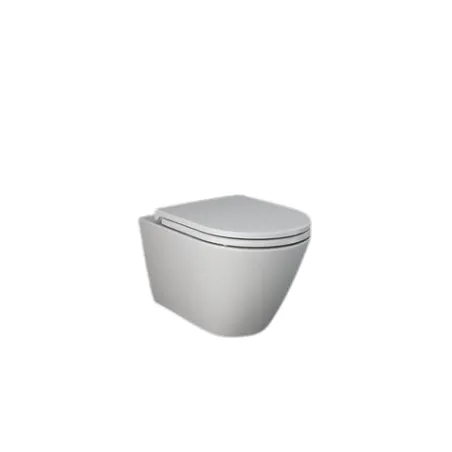 Szara wisząca Miska WC - Kolor: Szary Mat - Materiał: Ceramika - Montaż: Ścienny - Wymiary: 52 x 36 x 34 cm - Rimless: Bez kołnierza - ułatwione czyszczenie - Ukryte mocowania Deska WC - Materiał: Duroplast - Typ: Wolnoopadający - Wersja cienka...