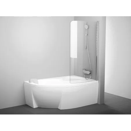 Jednoczęściowy parawan nawannowy do wanien Rosa. Parawan można zarówno otworzyć na zewnątrz jak i złożyć do wewnętrznej przestrzeni wanny. Doskonałe, szczelne mocowanie do ściany pionowym profilem w wykonaniu chrom błyszczący. Szkło jest zabezpieczone ochronną warstwą Ravak AntiCalc®. Wariant prawy.