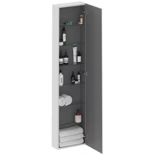 Słupek łazienkowy SB Balance II 40 z sześcioma szklanymi półkami. Wnętrze wykonane jest w kolorze grafitowym. Szafka ma wywiercone otwory na uchwyt, który nie jest w komplecie i należy go dokupić osobno. Do wyboru są trzy kolory: chrom błyszczący, czarny lub biały.