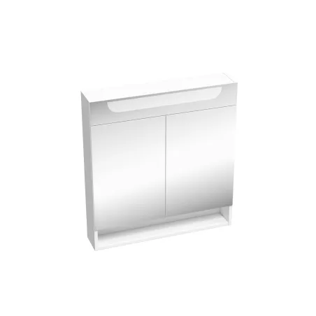Lustro z szafką MC Classic II 70 jest przeznaczone nad umywalkę Classic II 70. Jest wyposażone w zintegrowane oświetlenie LED w górnej części, z podłączeniem do zewnętrznego włącznika. Drzwi szafki są z obu stron wyposażone w lustra. Wewnątrz szafki znajdują się dwie szklane półki o grubości 4 mm. Dostarczamy w stanie zmontowanym.