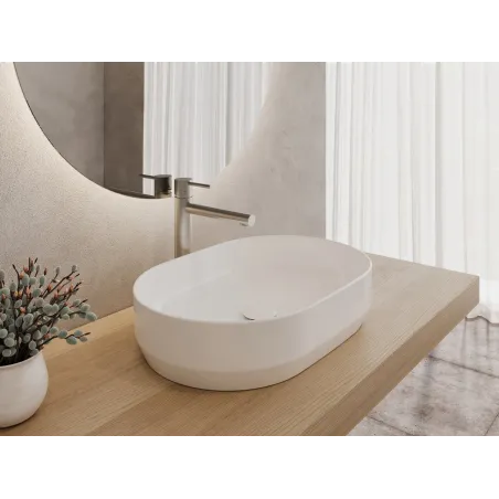 Umywalka Zeta 55 Slim jest wykonana z wysokiej jakości ceramiki i jest przeznaczona wyłącznie do montażu na blacie lub szafce z blatem. Umywalka musi być łączona ze stałym odpływem umywalkowym, który zapobiega przelaniu się wody.