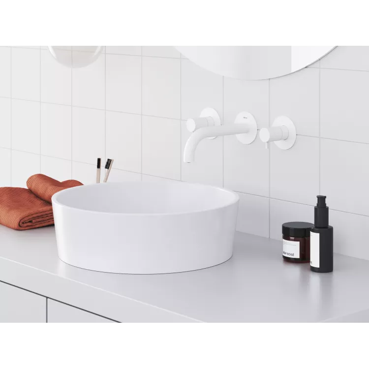 Te umywalki są przeznaczone do umieszczenia na blacie. Minimalistyczny design pięknie prezentuje się na drewnianym blacie i dodaje wystarczająco dużo miejsca do przechowywania. Idealne są blaty z oferty RAVAK, które mają specjalne wykończenie dla długiej żywotności.