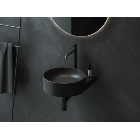 Umywalka ceramiczna cienkościenna Yard przeznaczona do montażu na konsoli Yard lub na konsoli pod umywalkę CS Yard 40, bez przelewu. Kolor czarny mat. Z otworem na baterię.