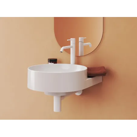 Umywalka ceramiczna cienkościenna Yard przeznaczona do montażu na konsoli Yard lub na konsoli pod umywalkę CS Yard 40, bez przelewu. Kolor biały mat. Z otworem na baterię.