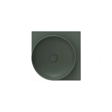 Umywalka ceramiczna cienkościenna Yard przeznaczona do montażu na konsoli Yard lub na blacie, bez przelewu. Kolor Grey Green. Bez otworu - do połączenia z podtynkową baterią umywalkową.