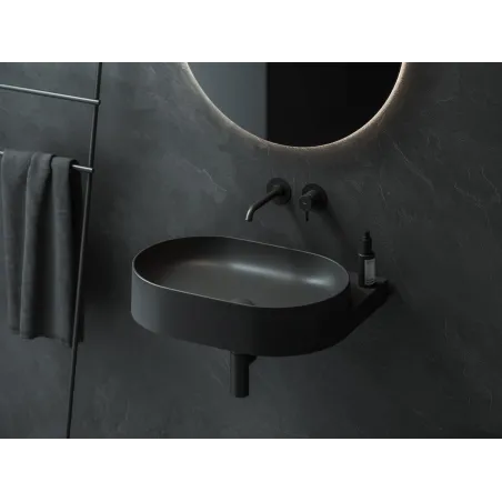 Umywalka ceramiczna cienkościenna Yard przeznaczona do montażu na konsoli Yard lub na konsoli pod umywalkę CS Yard 60, bez przelewu. Kolor czarny mat. Bez otworu - do połączenia z podtynkową baterią umywalkową.