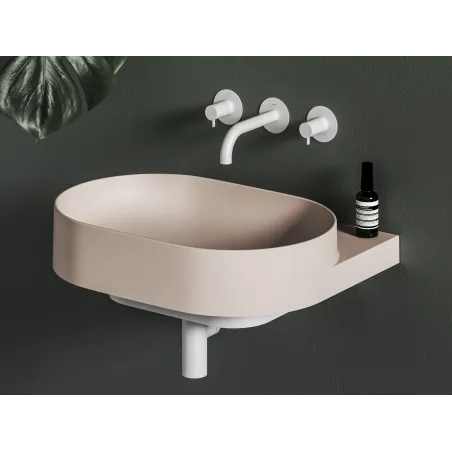 Umywalka ceramiczna cienkościenna Yard przeznaczona do montażu na konsoli Yard lub na konsoli pod umywalkę CS Yard 60, bez przelewu. Kolor Alabaster Pink. Bez otworu - do połączenia z podtynkową baterią umywalkową.