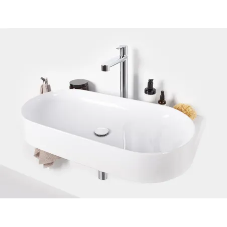 Umywalka ceramiczna cienkościenna Yard przeznaczona do montażu na konsoli Yard lub na konsoli pod umywalkę CS Yard 80, bez przelewu. Kolor biały. Z otworem na baterię.