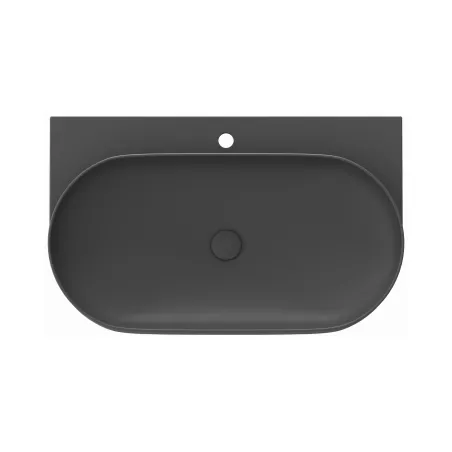 Umywalka ceramiczna cienkościenna Yard przeznaczona do montażu na konsoli Yard lub na konsoli pod umywalkę CS Yard 80, bez przelewu. Kolor antracyt. Z otworem na baterię.