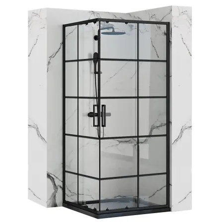 Kabina walk-in. szkło geometryczne 8mm, powłoka shiny-glass, czarnyTeleskop regulowany 70-120 cm (regulacja głębokości użytkowej kabiny) z możliwością montażu pod dowolnym kątemSzkło hartowane grubość 8 mm z powłoką shinny-glass ułatwiającą...