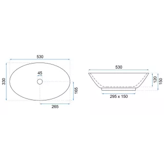 Stawiana na blat, owalnaOtwór przelewowy: nieOtwór na baterię: nieKorek w komplecie: nieWymiary: 60 x 42 x 14,5 cmGłębokość wewnętrzna misy: 12,5 cmKolor: białyDo kompletowania z bateriami wysokimi lub bateriami podtynkowymi oraz korkami...